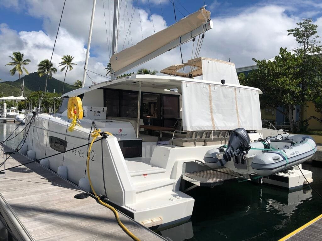 The motorized swim platform enables easy lowering and raising of the dinghy. In addition, simplifies entry and exit from the boat.